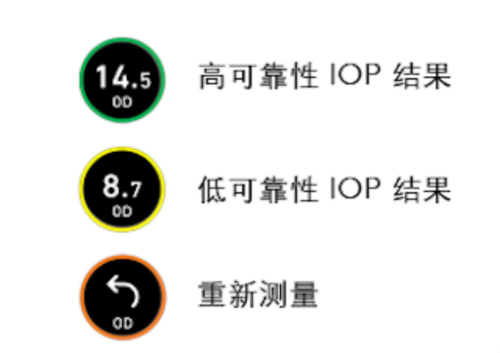 一旦准确对位立刻自动测量,每次测量都会提供一个结果。围绕IOP数值周围的彩色交互环则会提示您此次测量数据的可靠性。